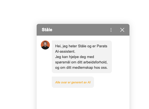 Når Parat ser en mulig løsning kaster de ikke bort tiden. Allerede etter et par måneder hadde Medlems-Morten, nå døpt Ståle, sin første arbeidsdag inne på Min side hos Parat. Der kan han gi medlemmene personlige svar, blant annet om hvem din tillitsvalgte er og hvilken tariffavtale du har.